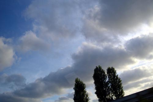 雨が降ったり止んだりする日の雲は、やっぱり慌しく動いている。石川の空は青が涼しげな色をしていました。 |