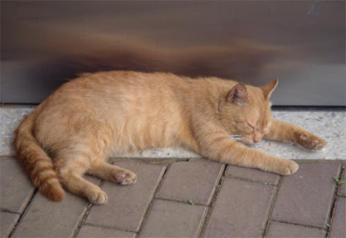 「いい加減 あごの下撫でようとするの止めろやっ」と寝ているに違いない。 |
