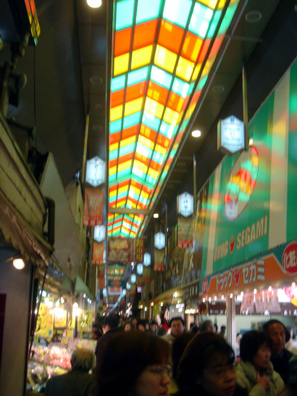 せっかくだからという事で、錦市場にも行って昼ご飯を探そうと思い、入っていくと年末という事で市場は大混雑。