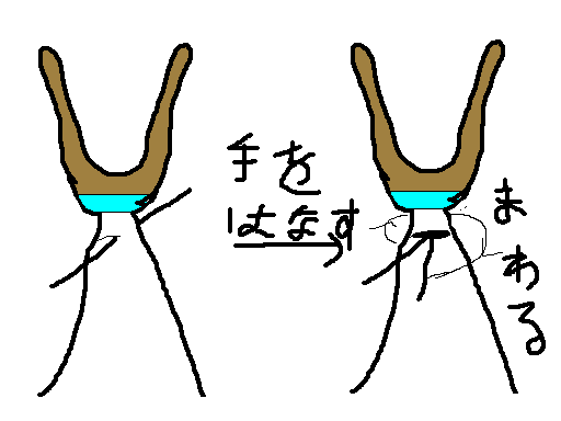 06.取り外し なにげに一番難しい作業取り外しです。 横からの断面図だとわかり辛いので上から見た方を参考にしてください。チョキを逆さにして、2本2本、計4本の指で器を支えます。 不安定なら親指も支えに使ってください。 少しその場で揺するようにして、切れ目に空気を入れそれから形が変わらないように上に持ち上げてください。 支える時に、前の工程でつけた中指の溝が重要になるので、しっかり印をつけましょう。 以上でロクロ工程終了♪ |